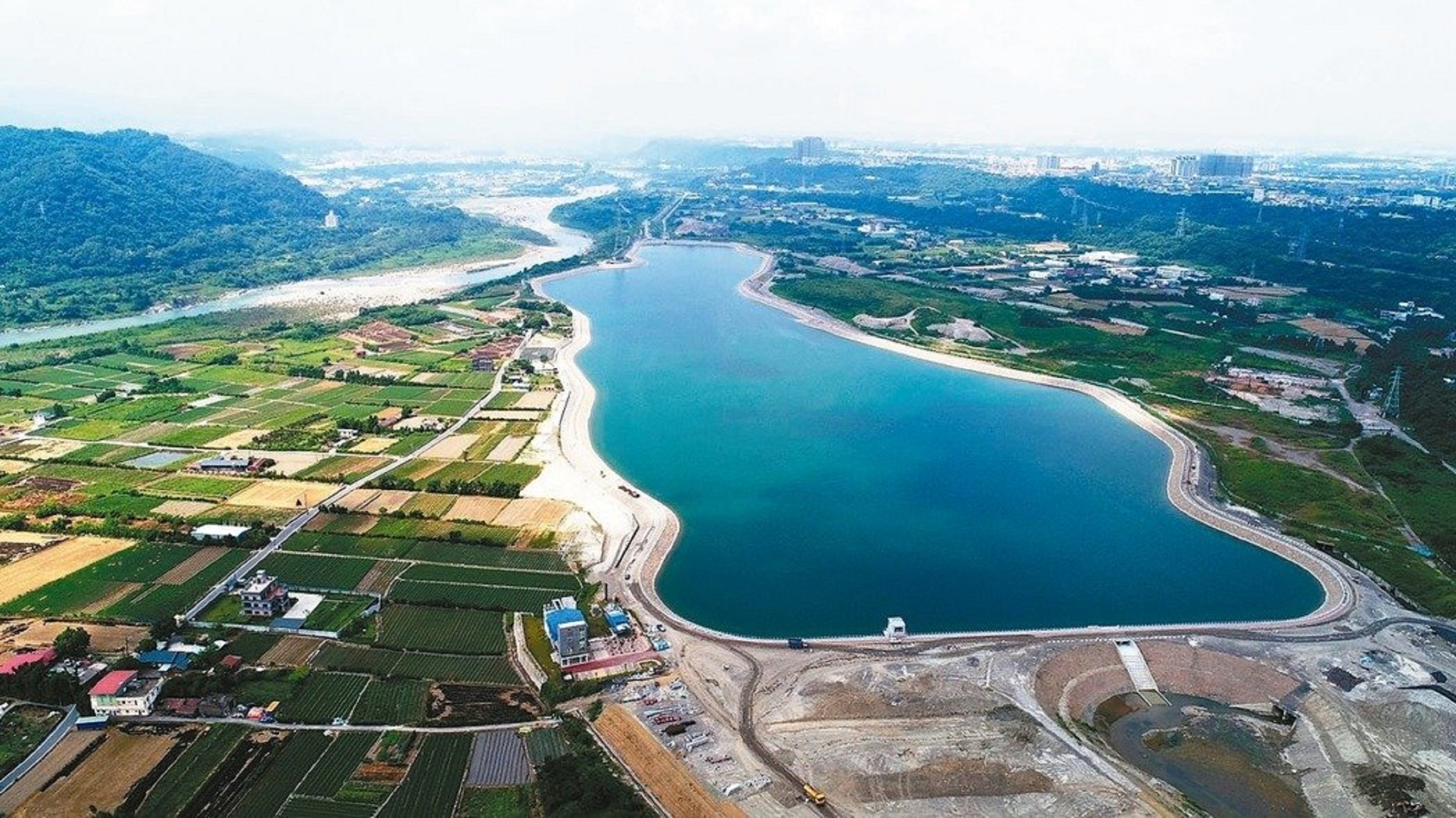 中庄調整池是全臺第一個平地水庫,蓄水量達505萬噸,可備援北桃園及板新地區7天的需水量。