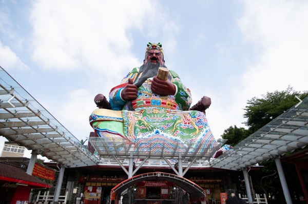 新竹普天宮位於新竹市古奇峰,關聖帝君又為武財神,鄰近科學園區的科技人多來膜拜求財,除關聖帝君外,最為著名為月老星君,虔誠前來求姻緣者,都能有好結果。廟前高達120尺的關公塑像,為顯著地標,今年廟方更因應兔年,在廟前以「旺來平安」設計可愛吉祥物,歡迎民眾前來拍照參觀。