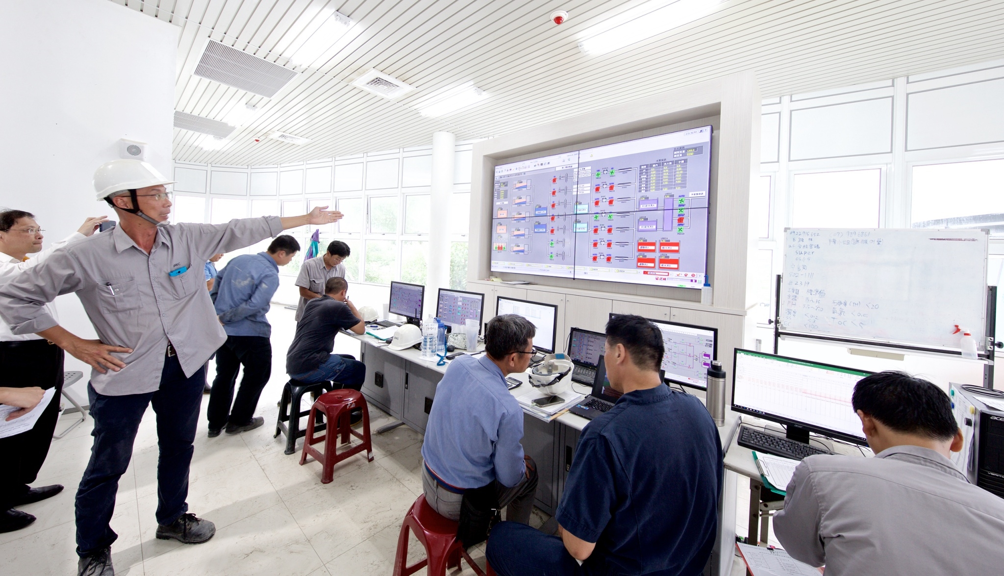 高雄鳳山溪再生水廠由藍鯨水科技承辦興建及營運事宜,副廠長袁常浩介紹水情中控室及再生水相關系統與作業。
