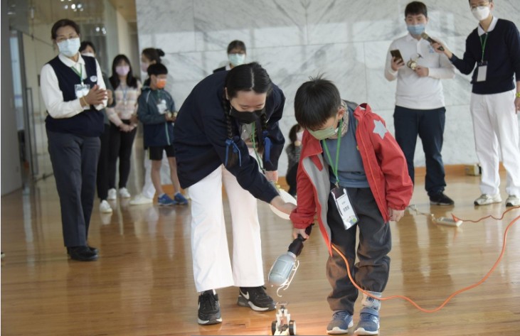 本科技體驗營規劃參觀「生醫產業跨域整合實驗場域(TIBIC)」與「銀髮聚寶盆試驗場域」,了解創新智慧科技如何協助醫療,如運用智慧機械手臂協助手術進行,以及運用科技協助提升長輩健康照護品質。還有多項綠能科技相關課程,如親手組裝太陽能車,體會太陽能發電驅動車輛前進的樂趣;也可透過生活周遭隨手可得的簡單材料,包含運動飲料、9V電池、正負極線、厚紙板、塑膠杯,產製淨零目標下,重要的潔淨能源-氫能。從理論、應用到實驗操作,手把手帶領弱勢學童體驗看得到、摸得到的科技學習之旅,擴大小朋友的生活體驗,培養探索新奇科技的興趣。