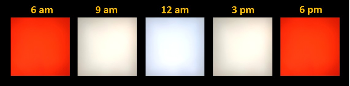 清大第四代節律照明,能夠模擬日光從從清晨到傍晚的光色變化。