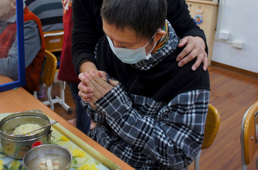 阿明在餐前禱告,滿心感謝-新竹市天主教仁愛基金會提供