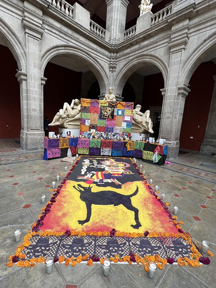 一所藝術學院內的中庭也布置了祭壇,歡迎亡靈回歸及提供民眾參加。