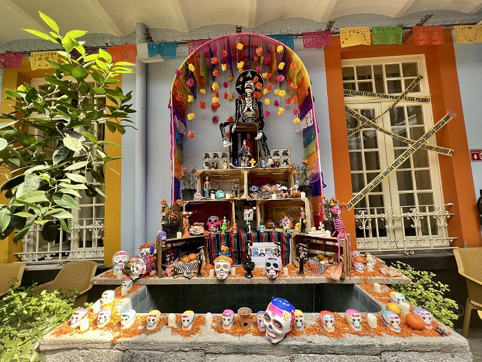 亡靈節期間,墨西哥各個旅館都會擺放祭壇,除了放置他們自己親人的照片和祭品外,也提供給住客擺放他們親人的照片和祭品。