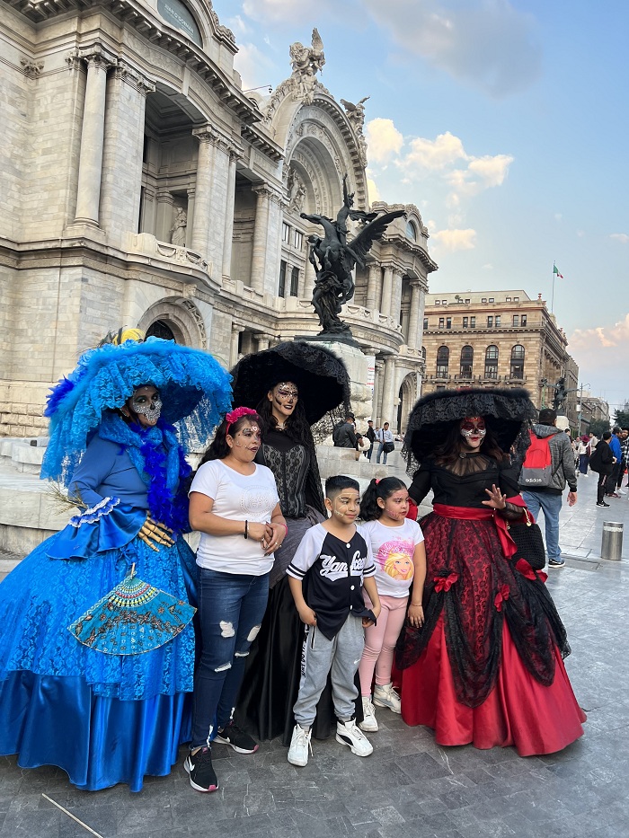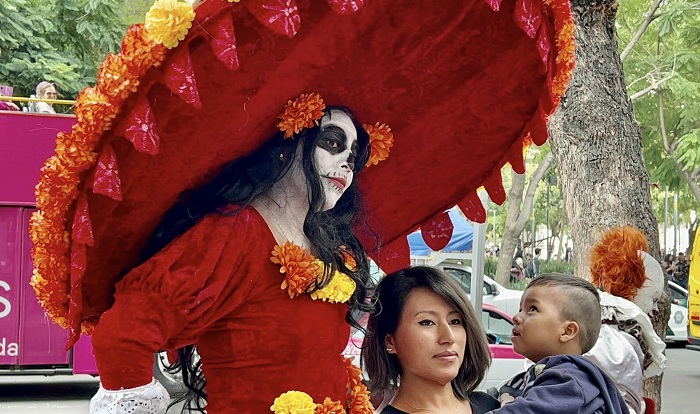 2022年疫情流感化,2021年停辦亡靈節大遊行,2022年還是停辦,相當遺憾沒有親身參與亡靈節大遊行。倒是2022年11/1-11/2日的亡靈節,遊客和居民都上街自行遊行,步行到國家宮廣場,整個場面很壯觀。許多街頭藝人和部分居民打扮成亡靈的模樣,甚至就在街上化妝亡靈骷髏造型,這種異國風情和文化,對亞洲人而言,相當新鮮、有趣,成為許多人的必遊清單,而我則帶著長輩,完成了一項實踐夢想的旅程!