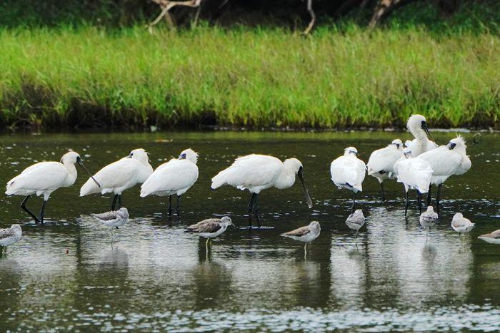 產發處長許智堡表示,黑面琵鷺是國際級的保育鳥類,依據香港觀鳥會發布2023全球同步普查結果,黑面琵鷺全球數量達歷年新高6603隻,其中有2/3在台灣,總計4288隻,比去年多了10%,成為黑面琵鷺渡冬首選,而香山濕地目前生物多樣性激增,孕育無數魚蝦貝類等物種,豐富生態更吸引了多種水鳥群聚停棲,無疑是候鳥們的新天堂。