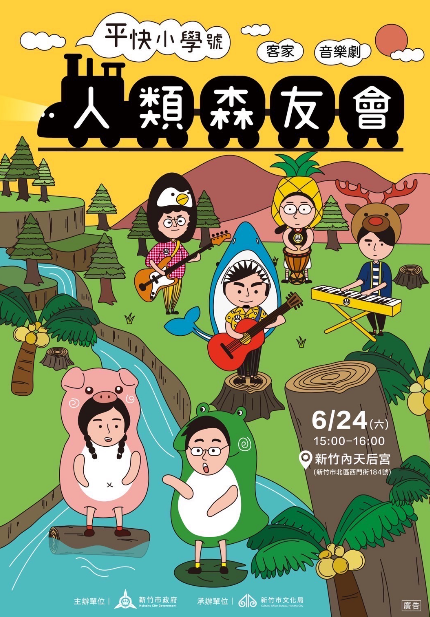 新竹市政府辦理校園母語推廣活動,將客家音樂劇帶進校園。文化局表示,市府今年邀請客家金曲樂團「黃子軒與山平快」,以客家音樂劇《人類森友會》走訪載熙國小、內湖國小、陽光國小、茄苳國小4所學校,並於本周六(24日)下午3時至4時,在新竹內天后宮(新竹市西門街184號)帶來戶外展演,歡迎市民朋友免費觀賞。