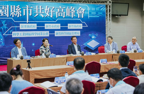 第二季「園縣市共好高峰會」6月27日於苗栗縣舉辦,邀請新竹市長高虹安、苗栗縣長鍾東錦、新竹縣長楊文科三縣市首長、竹科管理局長王永壯、台灣科學工業園區同業公會理事長李金恭等人與會。會中除了討論園區產業與交通議題外,本次更擴大討論面向,竹市亦針對園區瀝青道路工程使用廢玻璃容器再生料、先導公車計畫設置園區公車充電站,以及凍卵補助試辦計畫推廣等議題提出合作探討,獲竹縣、苗縣、科管局、園區同業公會高度共識及支持。