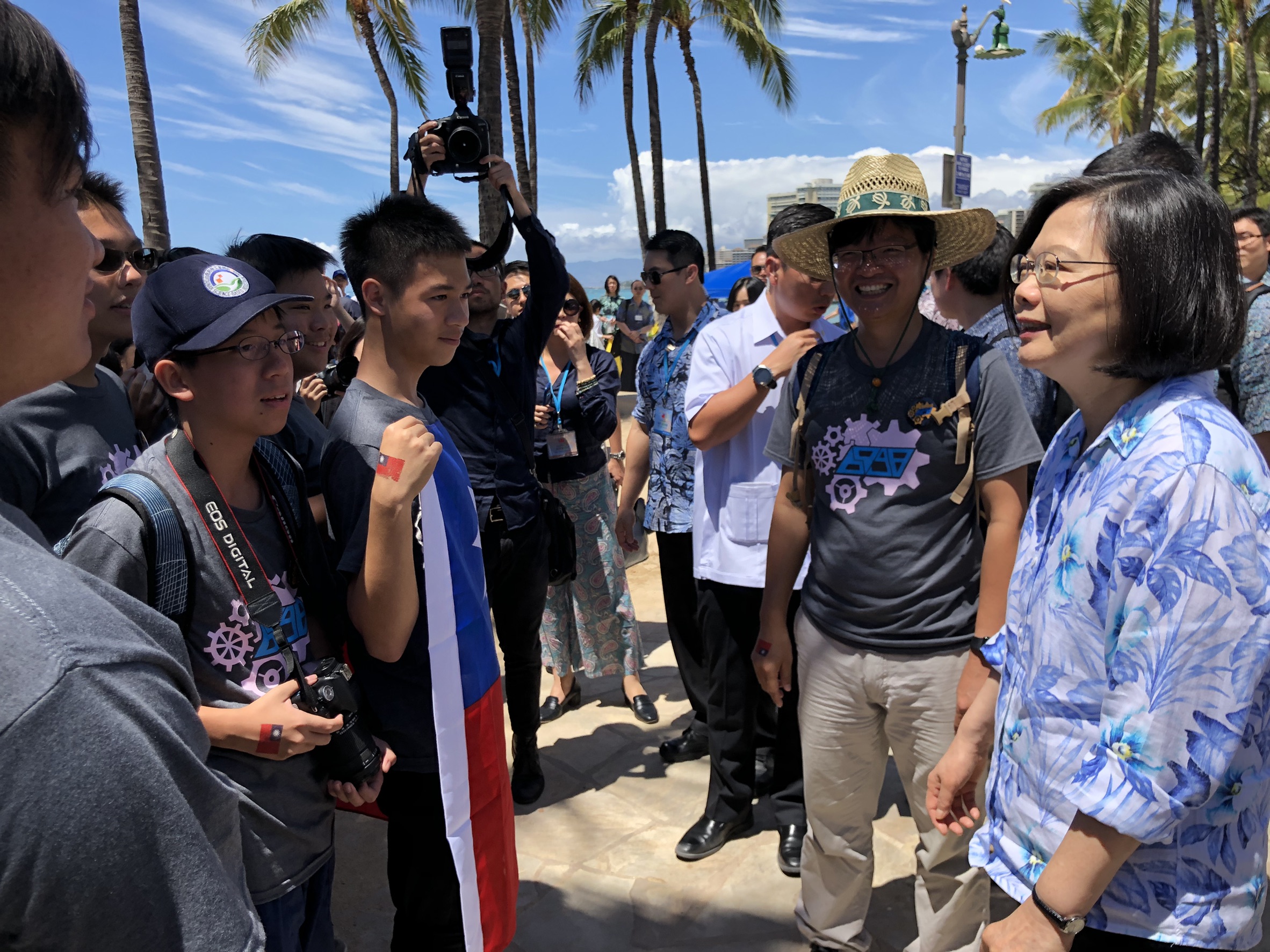 2019年世界盃FIRST Robotics Competition機器人競賽(以下簡稱 FRC)夏威夷賽事於檀香山時間3月27日正式揭幕,台灣代表隊國立南科實驗高級中學FRC6998團隊前往參賽。為鼓勵台灣參與各類國際賽事,小英總統特別於夏威夷接見這些南科實中學生,並替他們加油打氣,為自己及國家爭取最高榮譽,南科實中也將獲夏威夷州政府頒發的學生大使證書,有助於促進國民外交、提昇國家形象。
