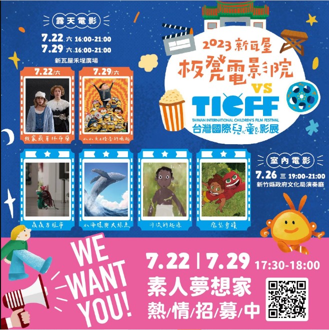新竹縣暑假最High的親子活動-新瓦屋板凳電影院即將在7月22日、29日登場!新竹縣政府文化局今年特別與公視合作辦理影展,並舉辦素人夢想家徵選活動,給予喜愛展現自我的民眾,站上新瓦屋大舞台的機會,盡情揮灑青春及熱情,不限個人或團體報名,不管是舞蹈、歌唱或演奏都可以報名徵選,即日起至7月14日截止,歡迎全國民眾來報名。