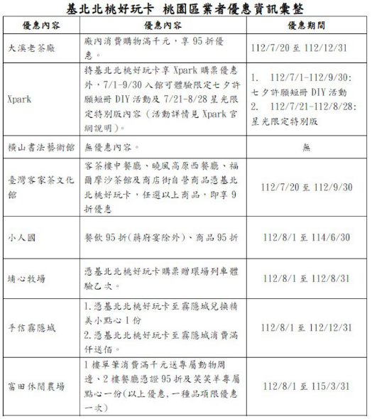 更多好玩卡優惠訊息,請上桃園觀光導覽網(http://travel.tycg.gov.tw/)查詢。