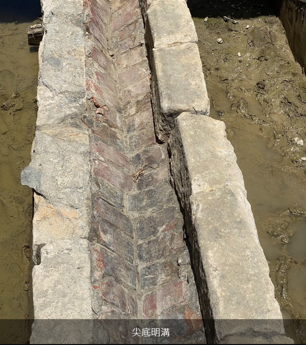 112年7月25日文化局邀集具考古、建築、歷史等相關專業之文資委員至現場勘查,確認經揭露後之尖底明溝現狀,與原擴充試掘計畫報告書中所描述狀況「不同位置受到不同程度的現代擾動影響,有部分城牆石溝牆傾倒、破損、或消失,亦有些許紅磚溝道破損、消失或不完整」有差異;同時在水溝疊石下未明顯有擾亂層位出土一件史前陶把,另在出土陶把層位之上之擾亂層底部發現一件粗厚之史前陶,經提取團隊研判其陶質近圓山文化,疑似為「陶支腳」。