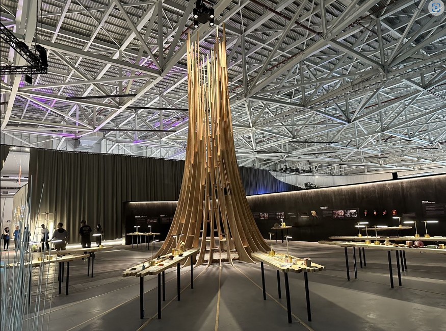 台灣館中的新竹縣展區《信念匯聚之地》,設計理念為新竹縣客家的文化信念源於大地,一進入展區就可看見高聳的「信念匯聚之塔」,象徵扎根土地的客家文化、信仰及技藝等孕育出的客家美學,奮發團結、積極向上,向外延伸擴張連結至展區各處展出的客家義民精神、三山國王信仰、客家山歌、客家方口獅、海陸腔客語、膨風茶、客家物產、客家民俗活動等,呈現新竹縣豐富多元的客家文化。