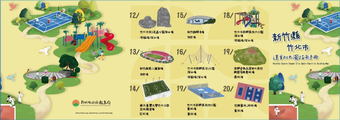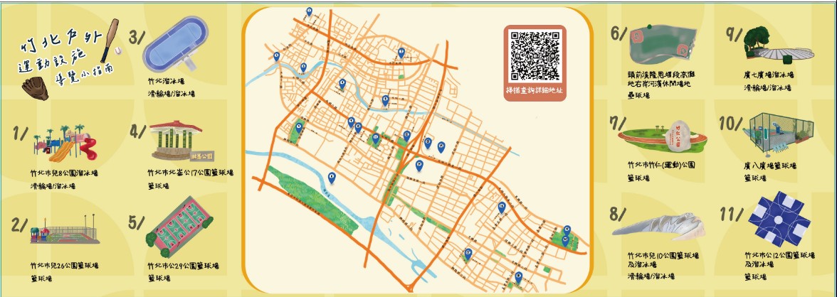 此外,教育局就竹北市現有體健設施繪製「竹北運動地圖指南」提供縣民使用,指南中包含竹北溜冰場、兒26公園籃球場、世興簡易棒壘球場等20處運動場館,並提供運動場館之地點、運動項目、管理單位等資訊,以活絡竹北市現有體健設施使用,期望因應運動人口需求,歡迎民眾多加利用。