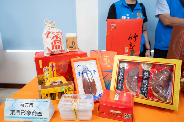 今日8縣市首長或代表們也攜手推廣在地老街與商圈特產,包括竹市東門形象商圈、竹縣內灣老街、苗栗南庄老街、台中市特色商圈、彰化鹿港老街、南投中興新村、雲林古坑華山商圈、嘉義市商圈文化促進協會等,更展示各縣市精選特產,像是竹市知名老店新復珍的竹塹餅,以及利利號肉乾、新福源花生醬蛋捲、淵明餅舖水蒸蛋糕、阿忠冰店鳳梨醬、竹魚水產烏魚子、南興米粉、德龍商店水潤餅、新竹好香米等,無論是自用或作為旅遊伴手禮皆相當合適。