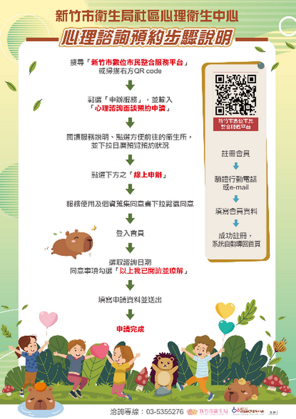 衛生局長陳厚全表示,為了讓有情緒困擾的市民能夠得到幫助,市府提供市民免費的心理諮商與諮詢服務,有需求的民眾皆可至「新竹市數位市民整合服務平台」( https://reurl.cc/QjQ6dq )預約申請免費心理諮詢服務,此外,今年8月1日起更攜手中央提供15到30歲民眾每年免費3次心理諮商,亦可撥打24小時1925安心專線,使用免費心理諮詢服務,或洽詢新竹市社區心理衛生中心(03-5355276),將有專人服務。