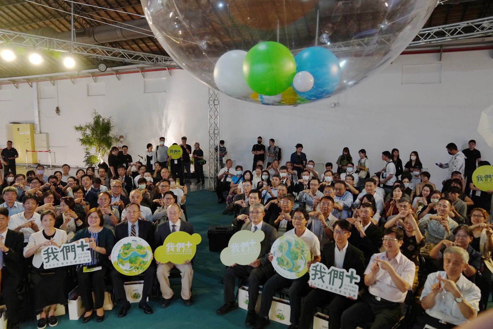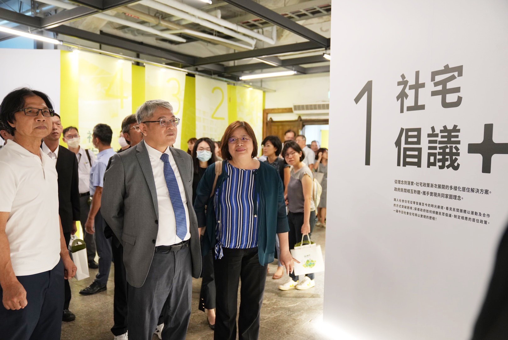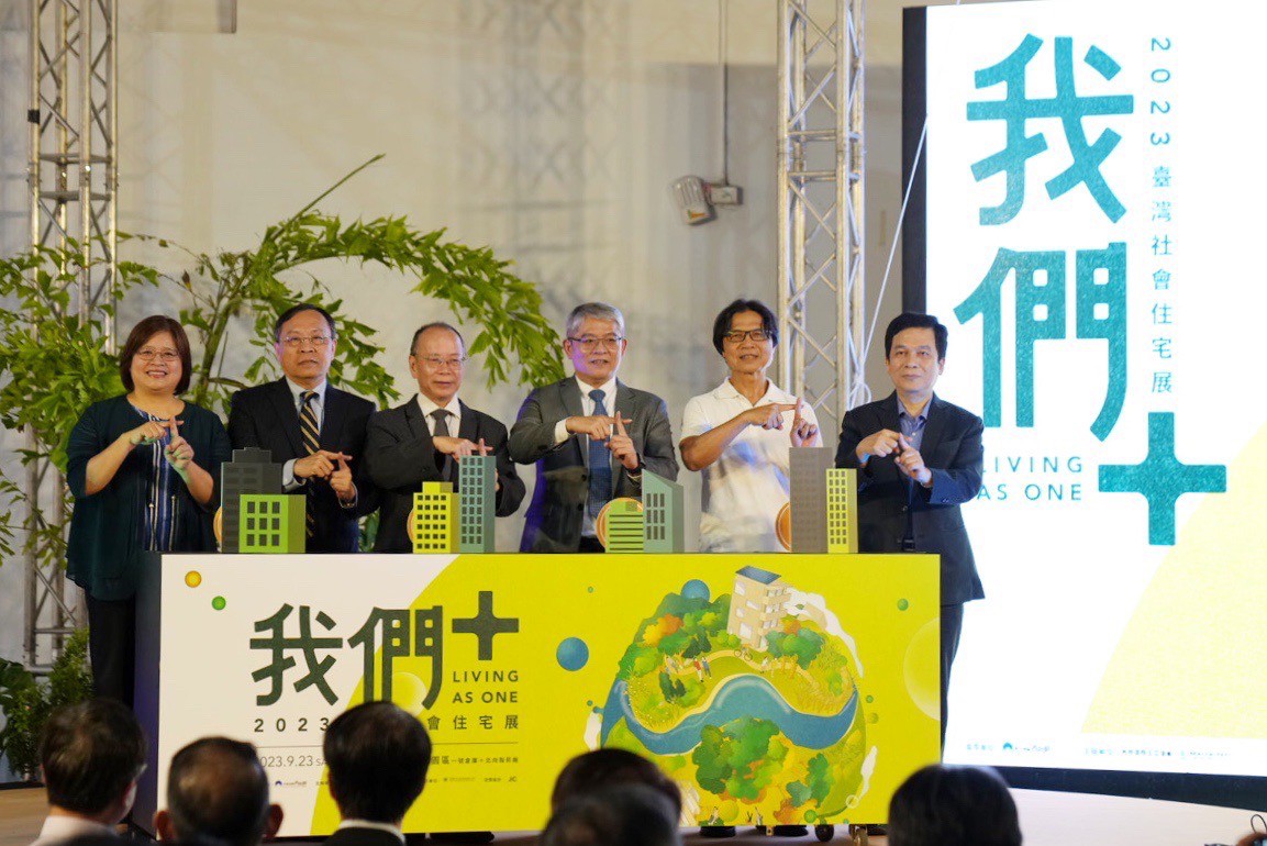 2023臺灣社會住宅展《我們+ 》,9/23日於松山文創園區1號倉庫開幕。行政院政務委員張景森、內政部政務次長暨國家住都中心代理董事長花敬群、臺灣銀行董事長呂桔誠、立法委員吳玉琴、前部長葉俊榮,以及多位貴賓蒞臨。展覽也在「蓋社宅、辦入厝」象徵社宅完工的開幕式中熱鬧登場。