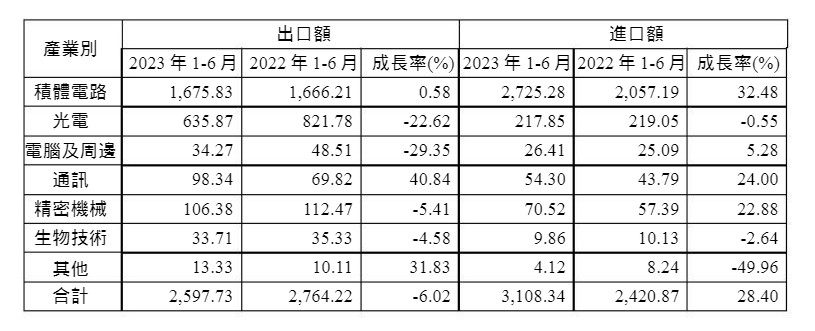 表二、南科2023年上半年進出口額 單位:新臺幣億元