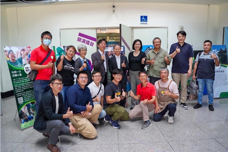 「EBC生物炭碳匯先行者聯盟」活動大合照(由左至右分別為:古坑享邑農夫咖啡、華驛科技、大川果園、有限責任台灣海口農糧生產合作社、逢甲大學綠能暨生技產業發展研究中心、中科管理局、光泰環能、全民牧場、媳婦兒有限公司、珏如教育農園、淺山植藝工作室及微醺農場)