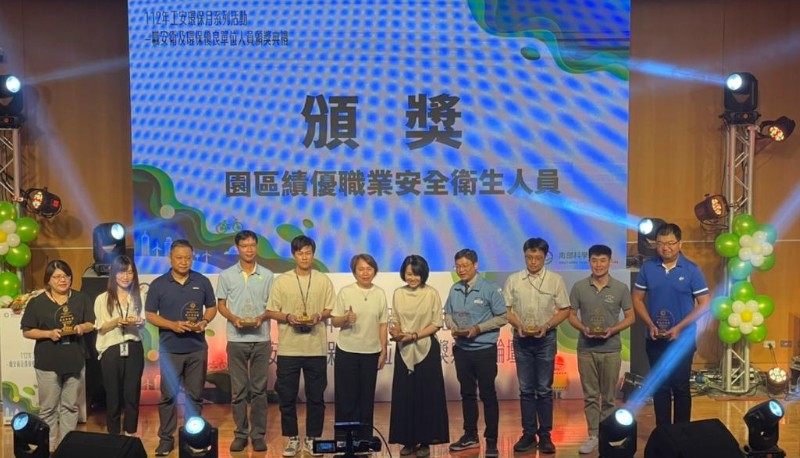 在全球經濟動盪不安帶來的嚴竣挑戰下,南科持續擴建園區並積極招商,科技大廠維持製程領先,然而在提升生產力的同時,更加重視的是社會責任、職業安全衛生與環境保護工作,南科管理局為感謝環安優良從業人員,今(24)日上午於臺南園區舉行職安衛暨環保優良單位人員頒獎活動,今年共有台積電、聯電、友達光電、信鼎技術、住華科技等5家公司8個事業場所獲選優良單位,以及10家公司16位優良人員獲獎,感謝堅守環安崗位上之從業人員,因為有他們努力,才能使園區產業在提升產值的同時,也能兼顧安全衛生與環保工作。