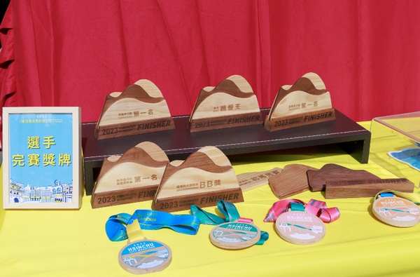 高市長說,市府持續推廣「宜居永續」施政策略,這次馬拉松也首次推出「永續組別」,補給站提供100%可回收無淋膜紙杯,提倡賽事當天「一杯到底,永續有你」,一起為ESG的理念努力;此外,還邀請到竹市環保局再生家具廠迴木工坊製作獎盃,並為跑者們打造「新竹馬永續手作課程」,歡迎大家用雙腳體驗竹市之美時,也能親手製作環保的回收木創作。