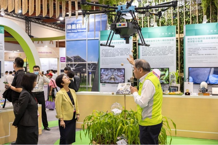 農業部展出有助農藥減量的「寄生蜂球量產及無人機投放技術」。