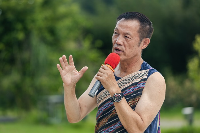泰雅族長老達少.瓦旦現場展演國家重要無形文化資產的「泰雅史詩吟唱」。
