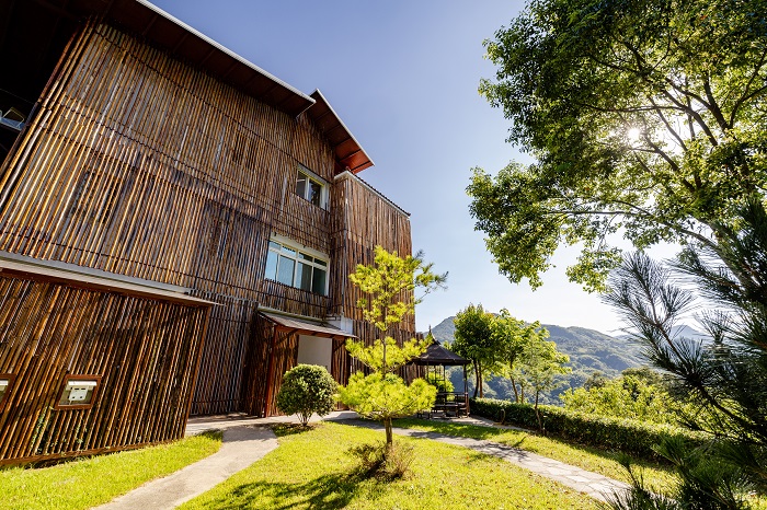迎賓的白鶴靈芝茶及早晚餐野菜食材,皆來自自家經營的吾都生態園區。房間寬敞簡約,用材新潁,房內供給的茶包、咖啡包、沐浴乳、洗髮精等,也一樣是自家生態園區所產的馬告製作而成。