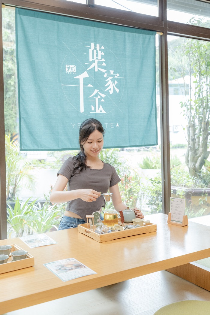 名符其實的「葉家千金」第四代青農葉佳欣,以精心設計的個人品茶組,示範如何泡出金黃烏龍的好滋味。