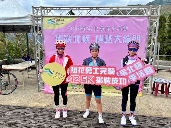 風景區管理處處長廖育儀表示,次日是經典的櫻花勇士完騎認證活動,自慈湖遊客中心經北橫公路一路上行至拉拉山遊客中心,全程約42.5公里,沿途因地形起伏較大,坡度陡較為陡峭,適合比較有經驗的自行車騎士參加。這項自行車騎乘活動舉辦迄今已邁入第9年,活動開放報名的首日馬上額滿,非常感謝各位車友們長期的支持,活動次日(3月3日) 現場計有約400多位勇士們到場,7點30分鳴笛後從慈湖遊客中心出發,首位勇士在上午9點7分抵達拉拉山終點站,今日活動共有249位勇士成功完騎,一起為2024櫻花勇士完騎認證活動畫下句點!