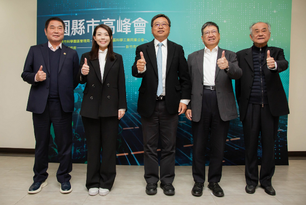 「園縣市高峰會」第5次會議,今(12)日傍晚於新竹科學園區警察服務大樓登場,由竹科管理局主辦,新竹市長高虹安、新竹縣長楊文科、苗栗縣長鍾東錦、新竹科學園區管理局長王永壯及科學工業園區同業公會理事長李金恭共同主持,研議大新竹輕軌、反詐、高中增班等議題,並於會中凝聚高度共識,將與中央攜手共推桃竹苗大矽谷計畫,以人民福祉為目標,攜手實現區域共榮、共好城市願景。