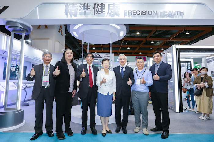 精準健康是「2023台灣創新技術博覽會」中的一大重點,經濟部長王美花(中)、國科會主委吳政忠(右3)、中國醫藥大學
