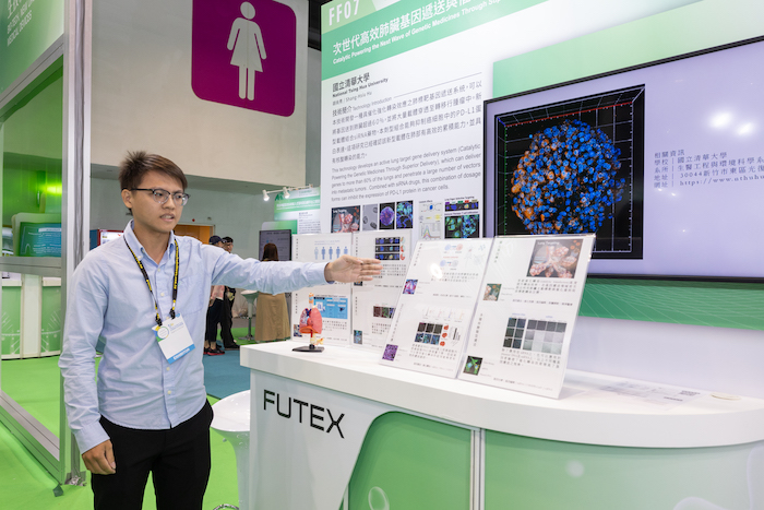 由清華大學胡尚秀教授、張建文教授、朱麗安教授領軍研發的「次世代高效肺臟基因遞送與催 化轉染技術」,是一種具催化強化轉染效應之肺標靶基因遞送系統,可以將基因送到肺臟超過60%,並將大量載體穿透至轉移性腫瘤中,新型載體結合siRNA藥物,可抑制癌細胞中的PD-L1蛋白表達。近年快速發展的基因治療,被認為是攻克腫瘤的潛力治療策略之一,但過去缺乏有效載體而難以對肺癌發揮作用,這項新型肺傳輸核酸載體,已在動物實驗上驗證具有高效肺臟累積,且能透過攜帶siRNA抑制腫瘤PD-L1表現來達到免疫治療效果,榮獲「2023未來科技獎」。