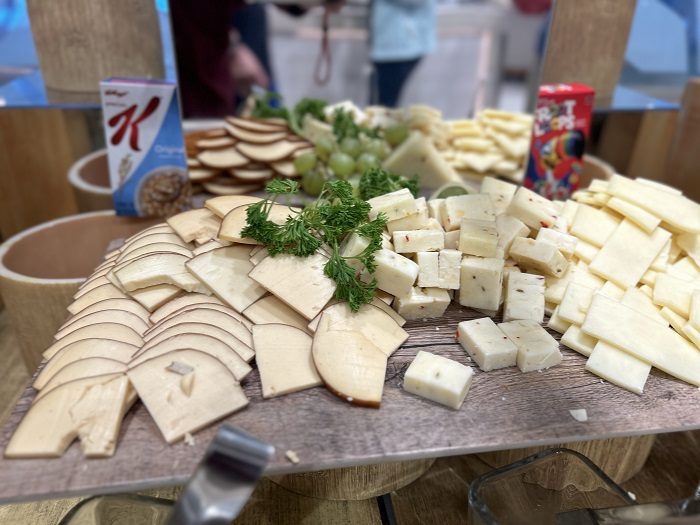 郵輪每天三餐都在第14層樓用餐,船上有5、6個餐廳,可以免費使用。第一次搭郵輪的我,還以為要自費,後來才知道是免費的,每一桌有3到5個服務員服務,感覺他們的服務不錯可以給小費,不給也不會怎麼樣。