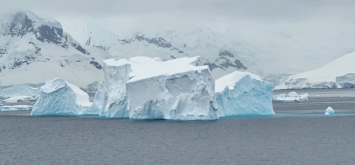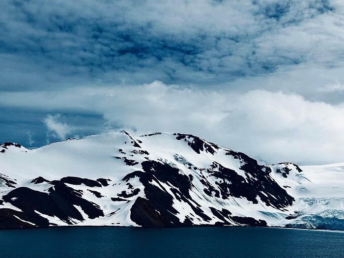 郵輪一路移動,當船到南極時,那種壯觀的驚喜是無法形容的,12/27日我們的郵輪,悄悄的航行到南極大陸,一早醒來,黑色的冰山、壯麗的冰川和深藍色的海洋,被窗外的景色完全震撼。郵輪進入喬治國王島的峽谷中,繞著冰山移動。