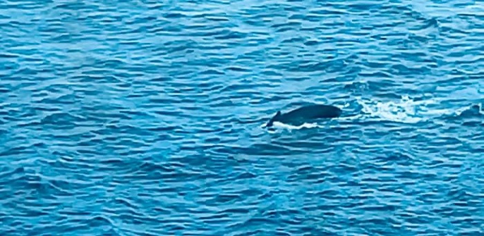 原來以為是虎鯨,貼在臉書上時,剛好人正在南極島拍照的林清華看到我拍的影片,說明它的背鰭很長,應為超級巨大的座頭鯨才對!座頭鯨又名巨臂鯨、大翅鯨,屬於鬚鯨亞目的海洋哺乳動物。
