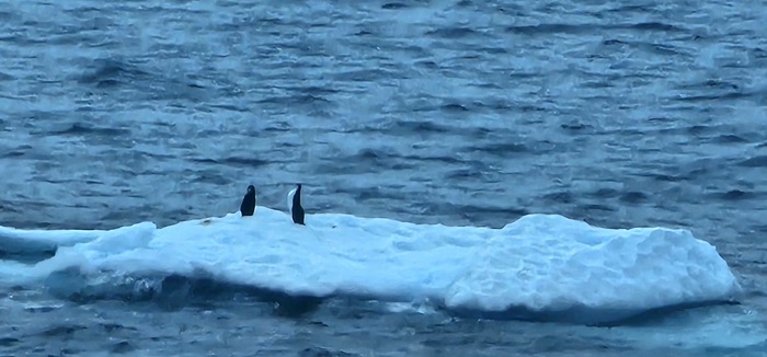 很幸運的拍到在浮冰的企鵝,看起來是兩隻,其實還有一隻被遮在後面。