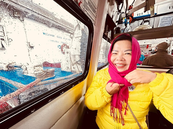 這次郵輪之旅有台灣5人組,主揪是旅居加拿大台裔昭文女士,以及住在台北,愛旅行的Jessica女士。加上新竹3人組:我和一位國中同學,加上她的社區大學同學3人參加,我們5人組曾經用視訊網路開會,實體見面就飛到洛杉磯的希爾頓飯店集合。