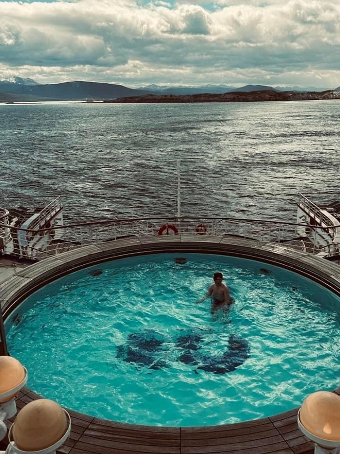 郵輪航行到南極大陸天氣很冷,甚至下雪,還是有老外就在SPA池戲水。水溫當然也高於戶外天氣。