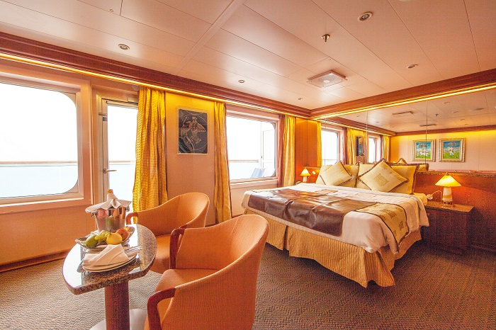 莎倫娜號規劃有6 種艙房規格,包括全船最頂級的莎倫娜套房。