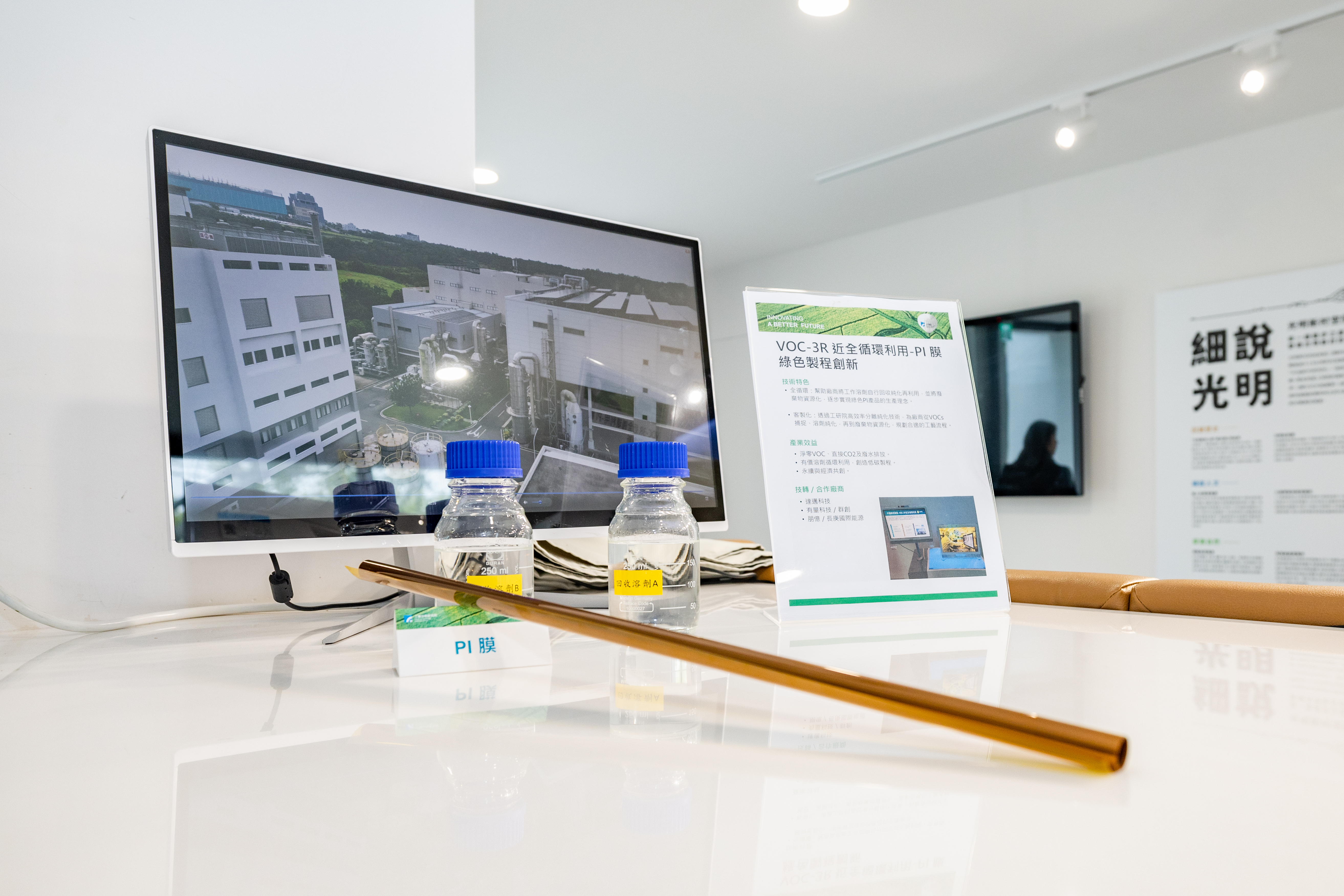 於「2035技術策略與藍圖」記者會發表的「VOC-3R近全循環利用-PI膜綠色製程創新」。