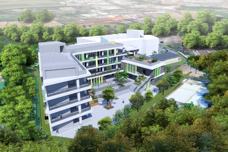 校長徐華助表示,新建校舍有兩棟地上4層建物、一棟地上2層的國際會議廳和圖書館,以及一棟1層樓的廚房和餐廳,共擴建30間教室,可增加9個班級、共計270位學生就學。新建的餐廳和廚房提供學校師生安全、營養、衛生的供餐與用餐環境,建物同時建置地下室一樓,設置47個汽車停車位,解決校內停車空間不足問題。增建校舍後,學校面積由1.4公頃增加爲1.8公頃,大大優化師生教與學的空間;新校舍完工後將有200席的國際會議廳、圖書館、新穎且足量的教學和專科教室,讓教學質量同步提升。