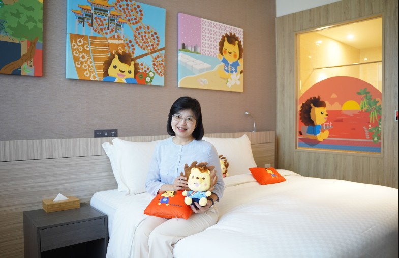 李安妤進一步表示,入住「皮皮獅主題套房」不僅可以看到各種可愛的皮皮獅裝飾,還可獲得限量版皮皮獅玩偶及其他相關贈禮,期待民眾來竹縣旅遊,欣賞各地美景,回到飯店後還有皮皮獅陪伴,為旅途增添美好的回憶。