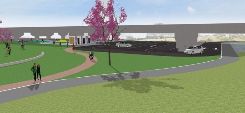 縣府環保局表示,先期規劃分為A、B兩區共約8.1公頃,A區位於台1線橋下到博愛南路間,將建置3座草地足球場(11人制足球場1座及5人制足球場2座)、橋下活動廣場和3座公廁。B區位在國道1號橋下至興學街間,將建置2座籃球場、1座越野自行車練習場、活動草地區、多元利用空間和3座公廁。兩區總工程經費約6140萬元。
