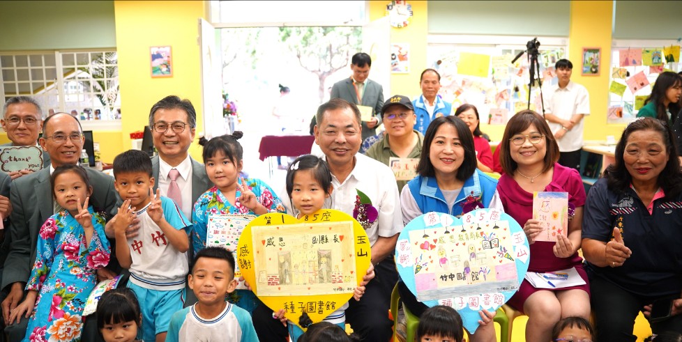 陳見賢表示,感謝玉山志工基金會為竹中國小量身訂做,牆上插圖結合竹中的在地文化特色,營造溫馨有趣的閱讀氣氛,圖書館的落成為竹中孩子提供充滿知識與夢想的空間,激發學生閱讀興趣。新竹縣政府教育局長楊郡慈也表示,新竹縣長楊文科全力支持教育,在全縣各校投入科技教育、閱讀教育及線上學習資源,豐富孩子多元探索。