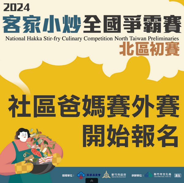 文化局補充,「2024客家小炒全國爭霸賽北區初賽」7月20日於新竹市體育館前廣場舉行,歡迎符合資格的參賽隊伍於7月1日前報名,並參照簡章內之所在地規定於「傳統風味客家小炒」及「創意風格客家小炒」擇一報名,獲獎前3強及佳作可分別獲頒4萬元、3萬元、2萬元、1萬元獎金,冠軍可晉級總決賽,爭取高達10萬元的獎金。欲參與北區初賽獨家「社區爸媽趣味賽外賽」的新竹市民,請把握機會於7月13日前報名,該競賽除了每隊可獲1千元食材補助外,前3名可獲驚喜獎品,所有隊伍皆可領取精美好禮。