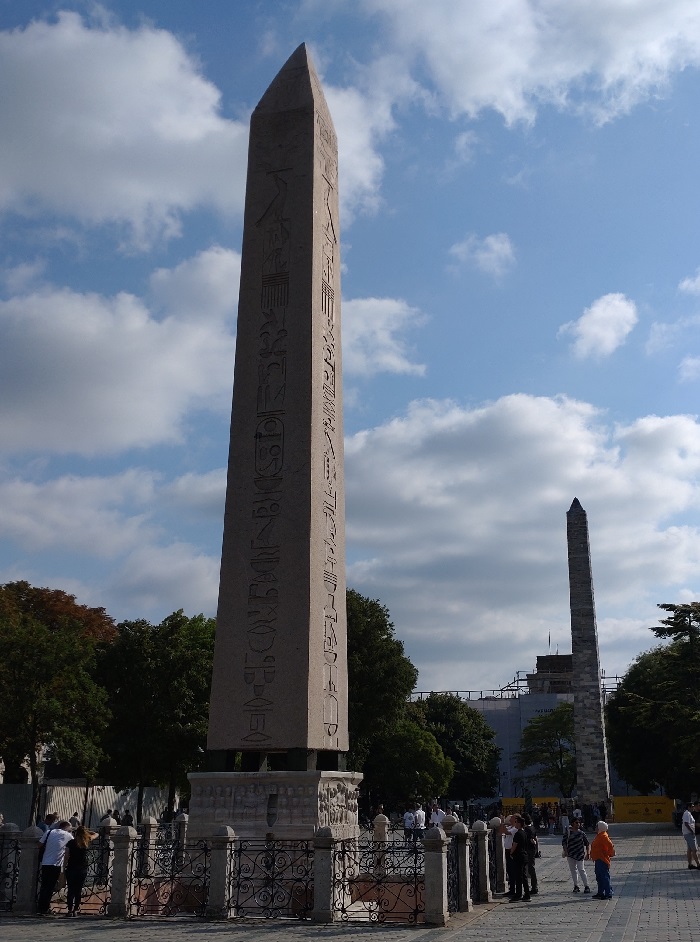 藍色清真寺右側,「圖特摩斯三世」方尖碑直入雲端。這座3,500年前的方尖碑原在埃及的「卡納克神廟」,,被羅馬皇帝下令移到此處,至今完好如新。很難想像又重又長的方尖碑如何通過海陸運送,就算以今日的科技也絕對是個大工程。
