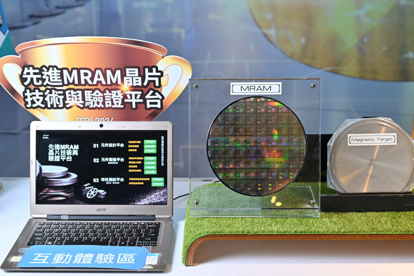 隨著未來車用市場、AI、高效能運算晶片以及量子電腦領域應運而生,快速處理龐大資料導致高效能記憶體的需求暴增。工研院發展磁阻式隨機存取記憶體(Magneto-resistive Random Access Memory;MRAM)技術,具備低耗能、讀寫速度快、斷電不失憶等特點,並建立一站式完成晶圓設計、製造到測試的「先進MRAM晶片技術與驗證平台」,協助廠商實現新世代記憶體導入量產。該平台已於2022年攜手半導體龍頭大廠,完成世界最快0.4奈秒寫入、超高可靠度的SOT MRAM陣列晶片,並與加州大學洛杉磯分校(UCLA)合作開發超低功耗磁性記憶體晶片,成果獲得國際肯定。