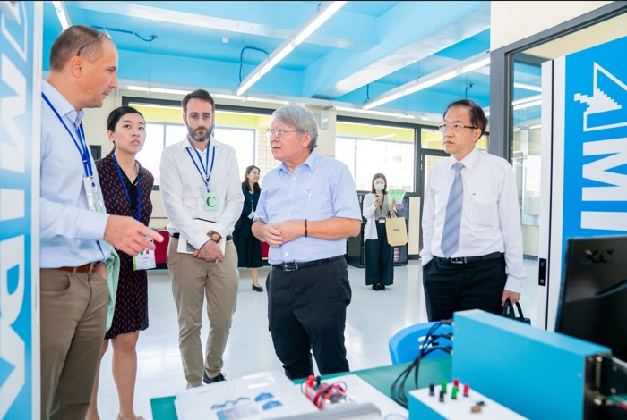 明新科大林啟瑞校長表示,配合國家政策發展跟全球產業趨勢,明新科大2019年即開全台大專院校之先,設置首座「半導體封裝測試類產線」,繼而成立全台第一個「半導體學院」,並與業界合作「半導體封測精英專班」。2022年進一步擴大規模、打造有如「小台積電」的「半導體人才培育基地」,做為教學之用,也做為企業新人培訓,針對半導體人力需求,規畫對應的培訓課程及辦理證照檢定。另外,在教育部國際司補助下,編製半導體科技華語課程,攝製相關情境教材。林校長說,很多國外學校都來明新取經,美國蒙大拿州、猶他州及澳洲的學生都即將組團來學習半導體知識。明新科大樂當推動半導體教育的實踐者,與國內外各界,共享半導體教學資源。
