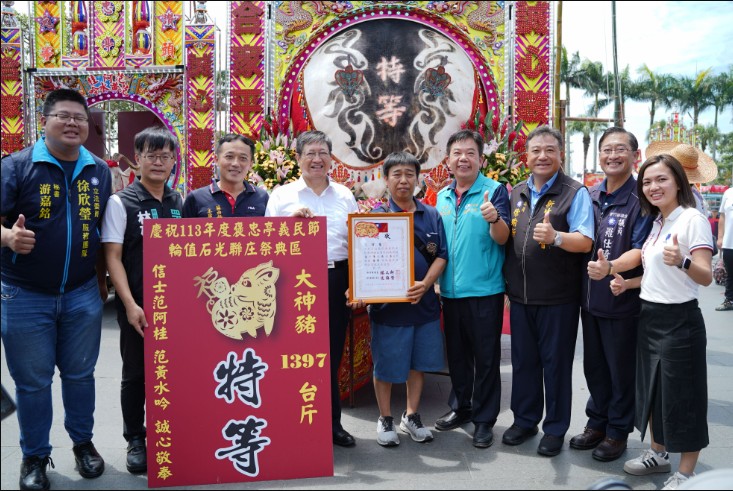 文化局表示,為了感念義民爺忠義精神,客家族群以自行飼養的豬羊來敬獻義民爺,更有祈求「風調雨順、國泰民安」的意義。此次特等獎神豬重1397台斤,飼主為范阿桂信士,特等神羊角長度3尺9分,飼主為張徐甜妹信士。